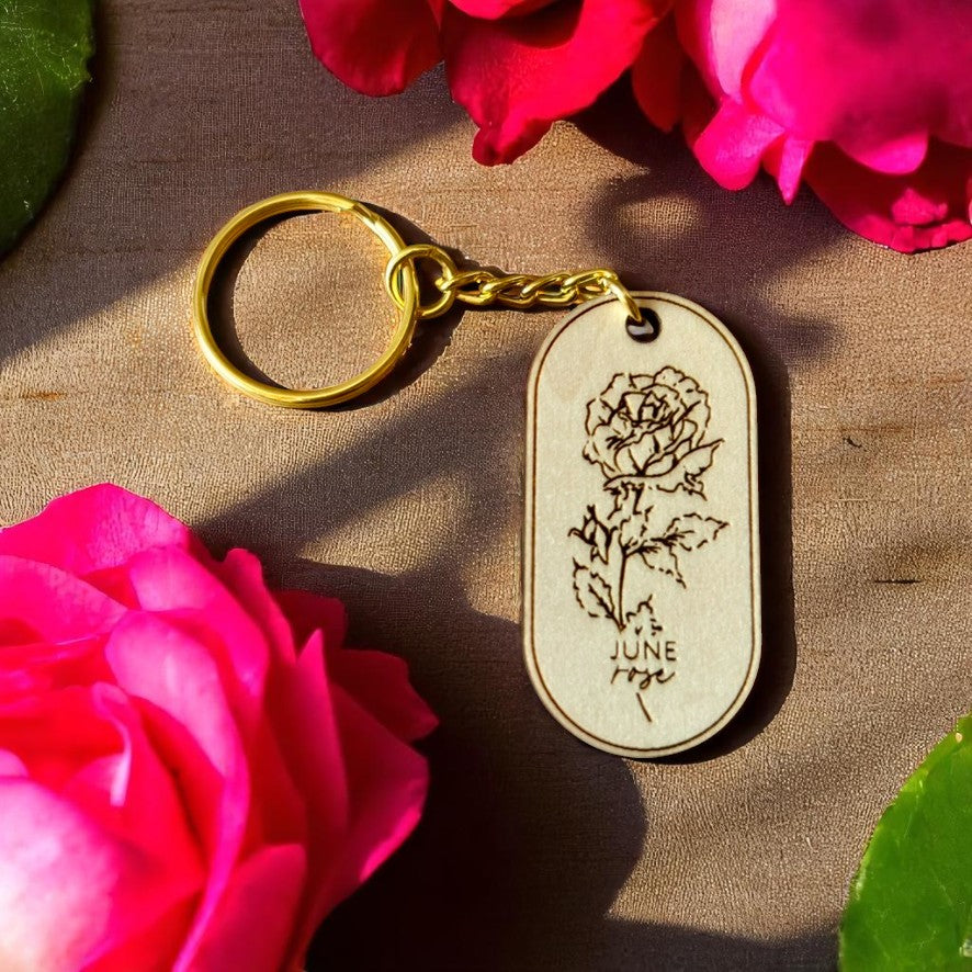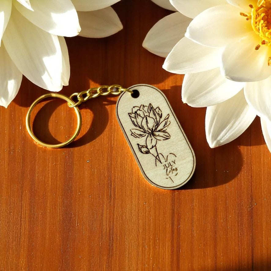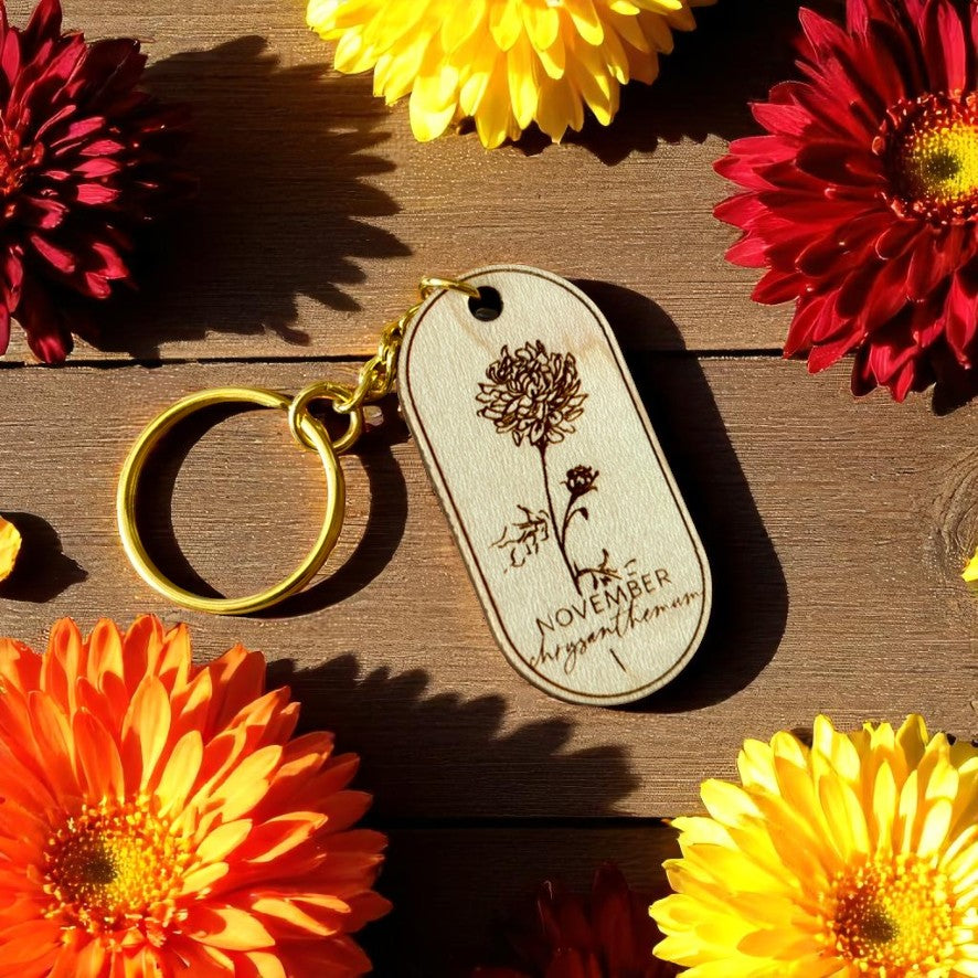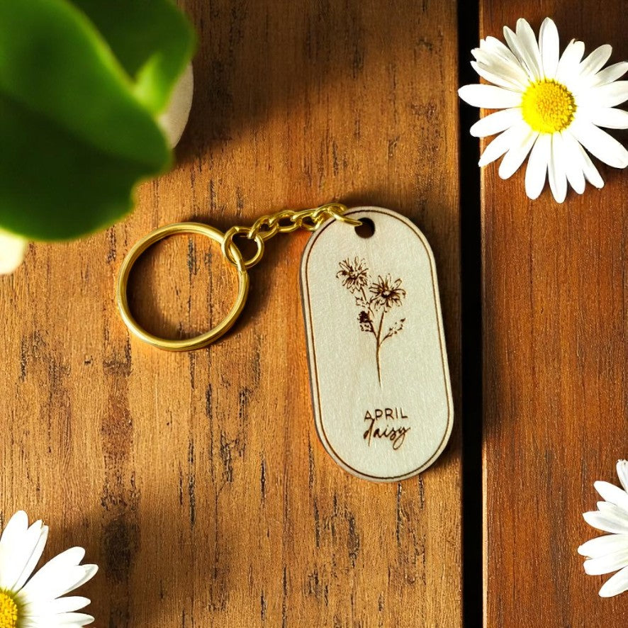 Celebrate the beauty of every birth month with our Birth Blossom Keychains. These oblong-shaped keychains, made from smooth maple wood, are laser engraved with delicate drawings of each month's symbolic flower.