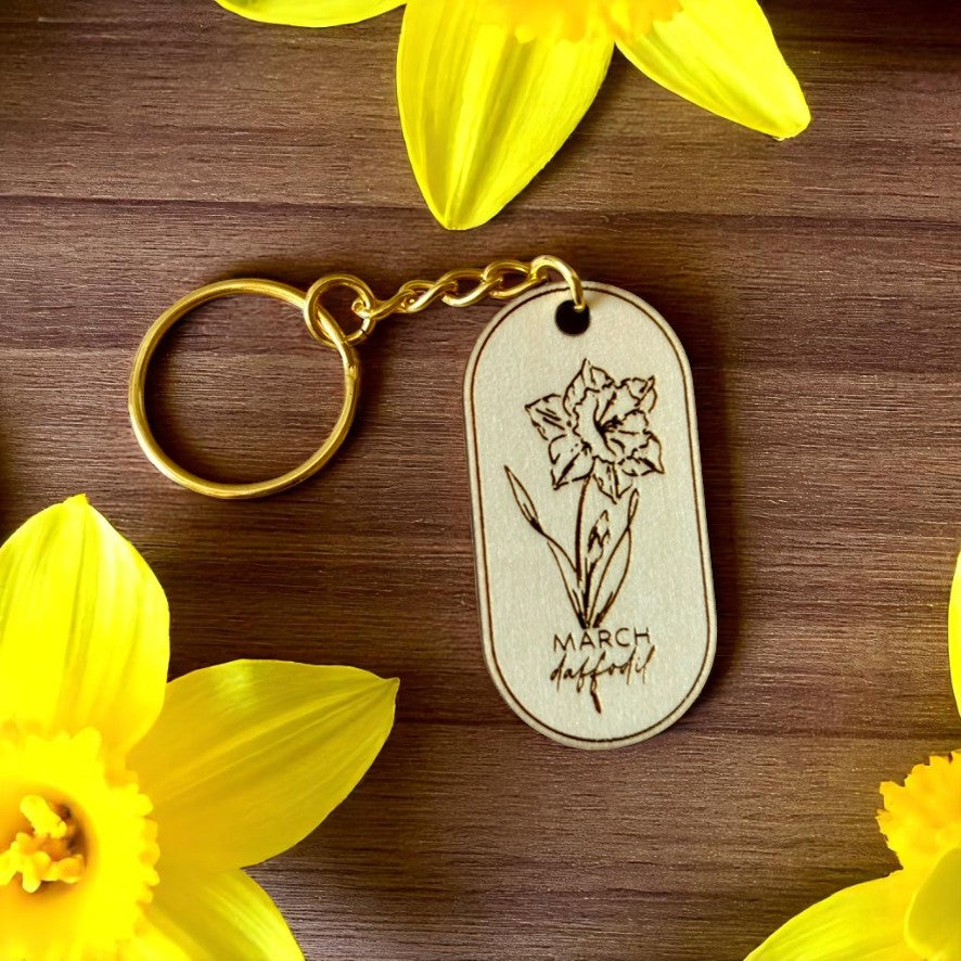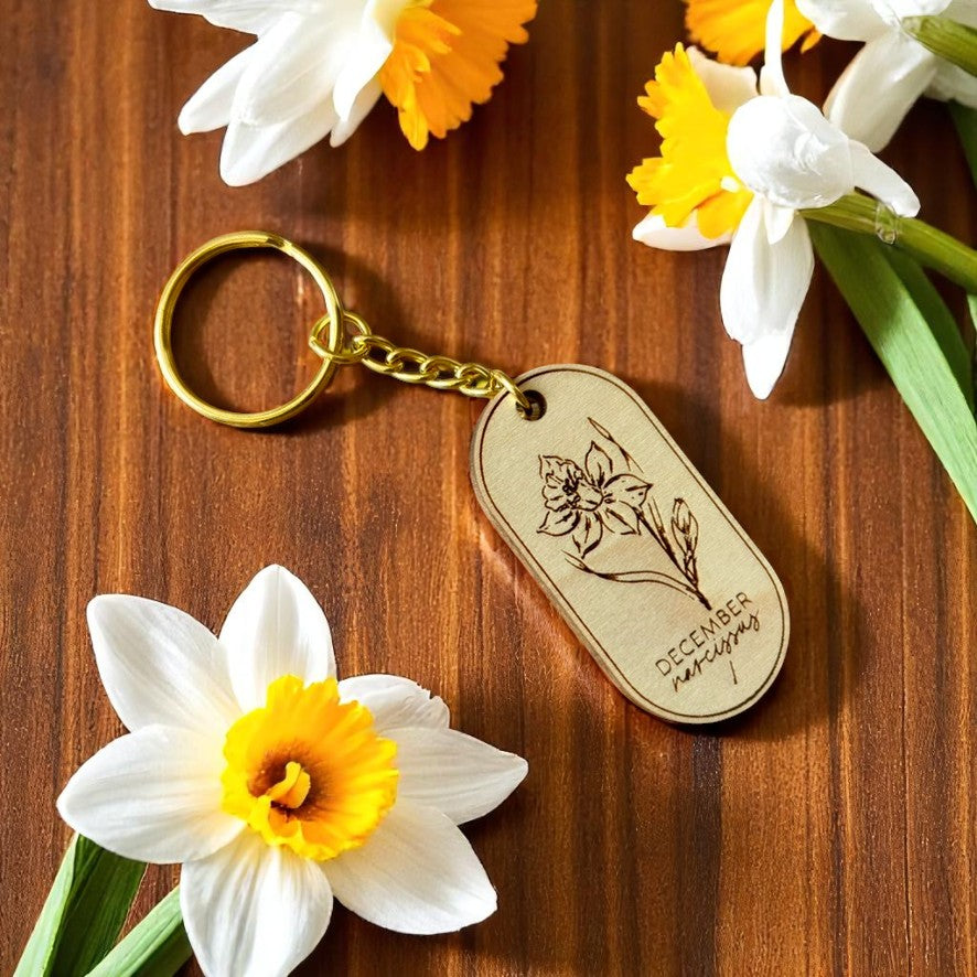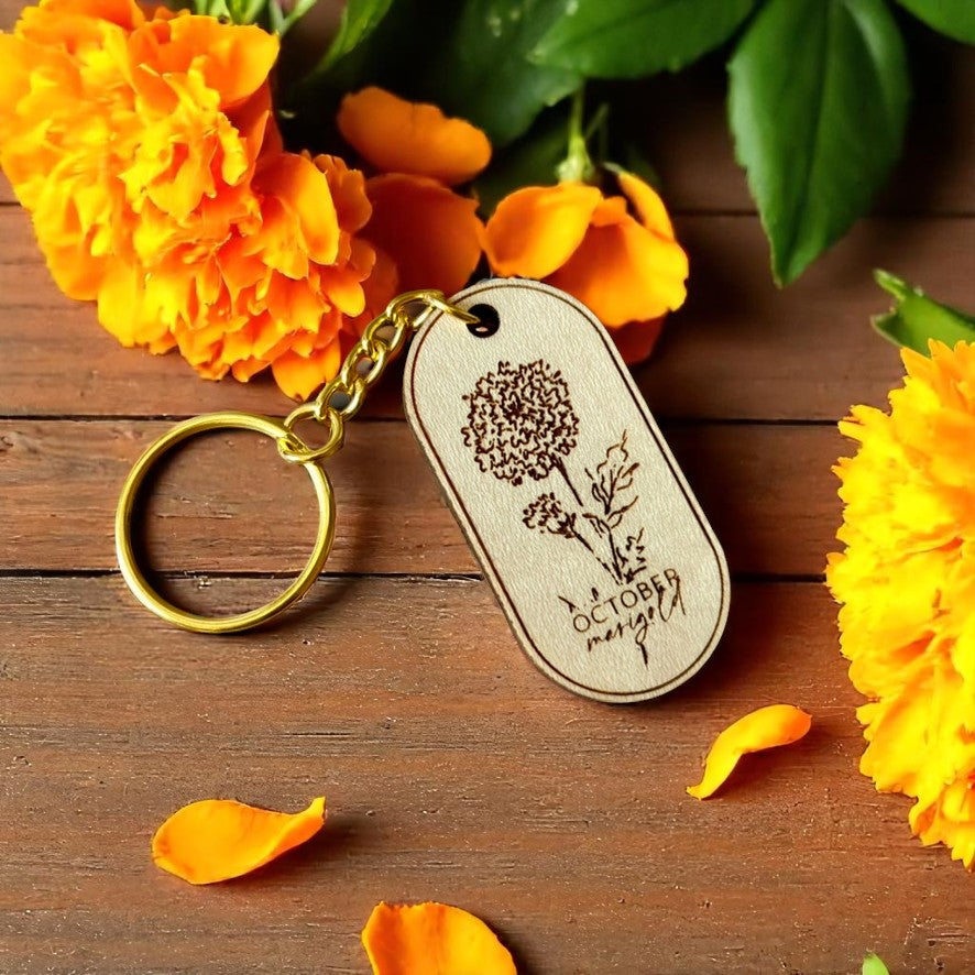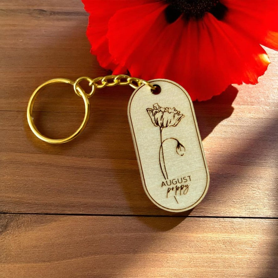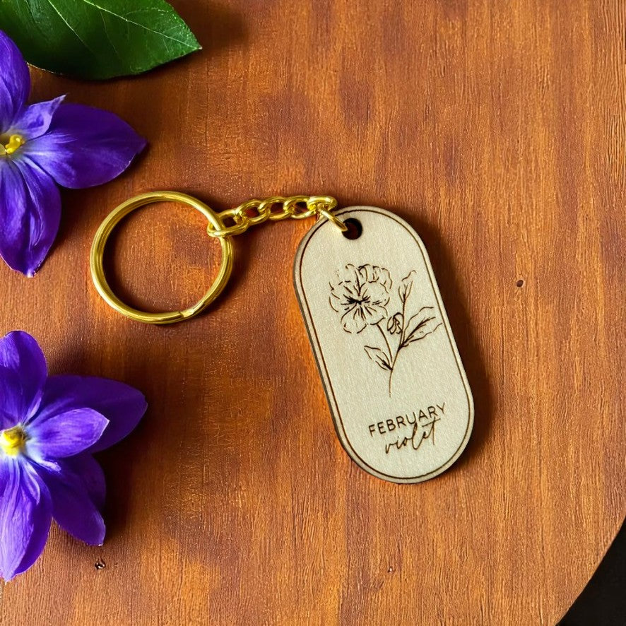 Celebrate the beauty of every birth month with our Birth Blossom Keychains. These oblong-shaped keychains, made from smooth maple wood, are laser engraved with delicate drawings of each month's symbolic flower.