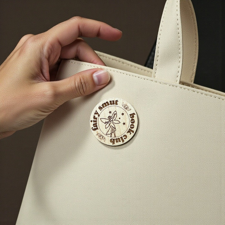 Celebrate your favorite bookish obsessions with our Book Club Badge Pins, laser-cut from natural maple wood and engraved with beloved literary tropes. Each pin is secured with a sturdy gold pin backing, offering a luxe finish that contrasts beautifully with the warm woodgrain.
