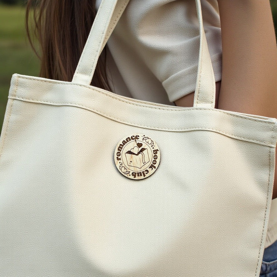 Celebrate your favorite bookish obsessions with our Book Club Badge Pins, laser-cut from natural maple wood and engraved with beloved literary tropes. Each pin is secured with a sturdy gold pin backing, offering a luxe finish that contrasts beautifully with the warm woodgrain.