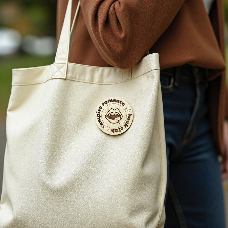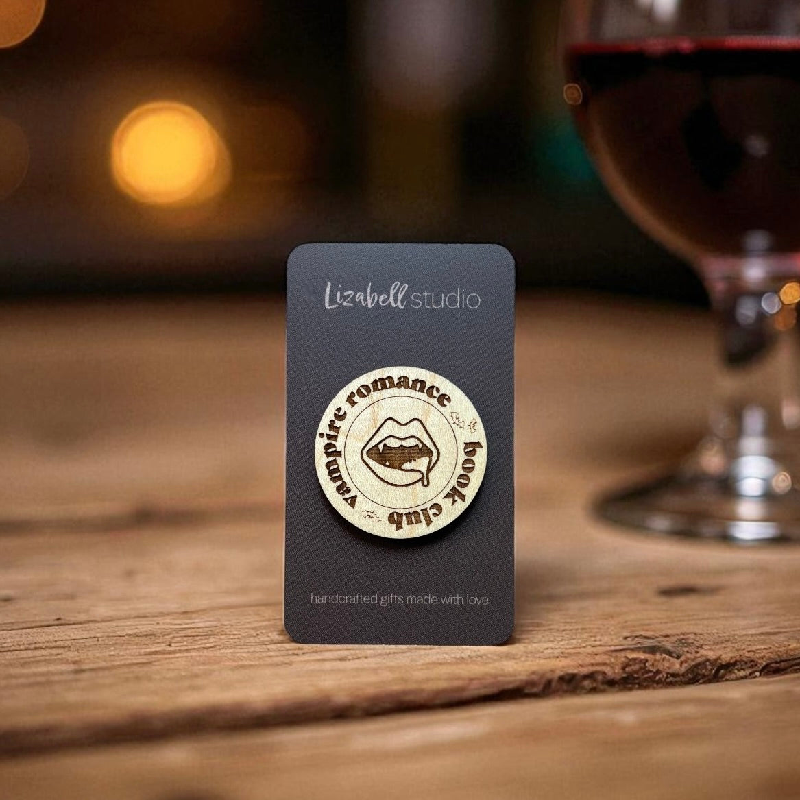 Celebrate your favorite bookish obsessions with our Book Club Badge Pins, laser-cut from natural maple wood and engraved with beloved literary tropes. Each pin is secured with a sturdy gold pin backing, offering a luxe finish that contrasts beautifully with the warm woodgrain.