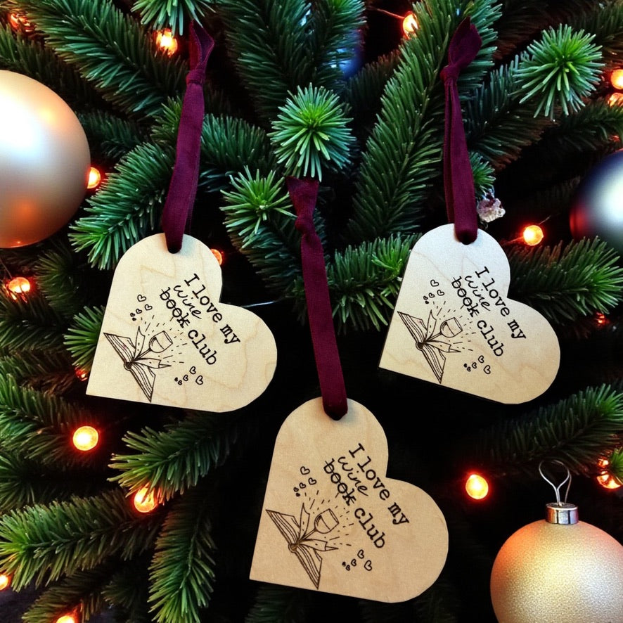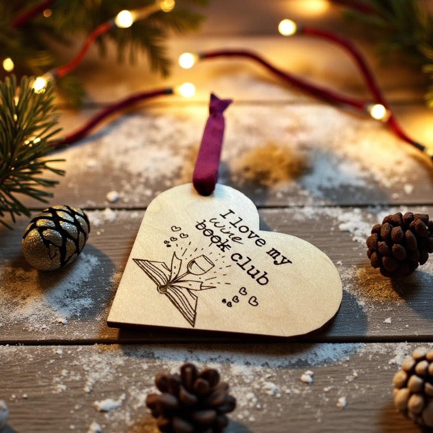 Because books deserves a spot at wine club too! A playful maple wood ornament that celebrates the love of wine and festive cheer — the perfect gift for wine and book lovers.