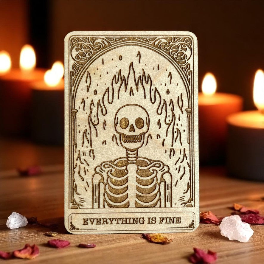 🔥 Everything is fine... no, really, it is! For those who can laugh through chaos, Everything Is Fine tarot card is your satirical reminder to keep going—even when it’s all a mess. Perfect for gifting to the friends who keep it real.