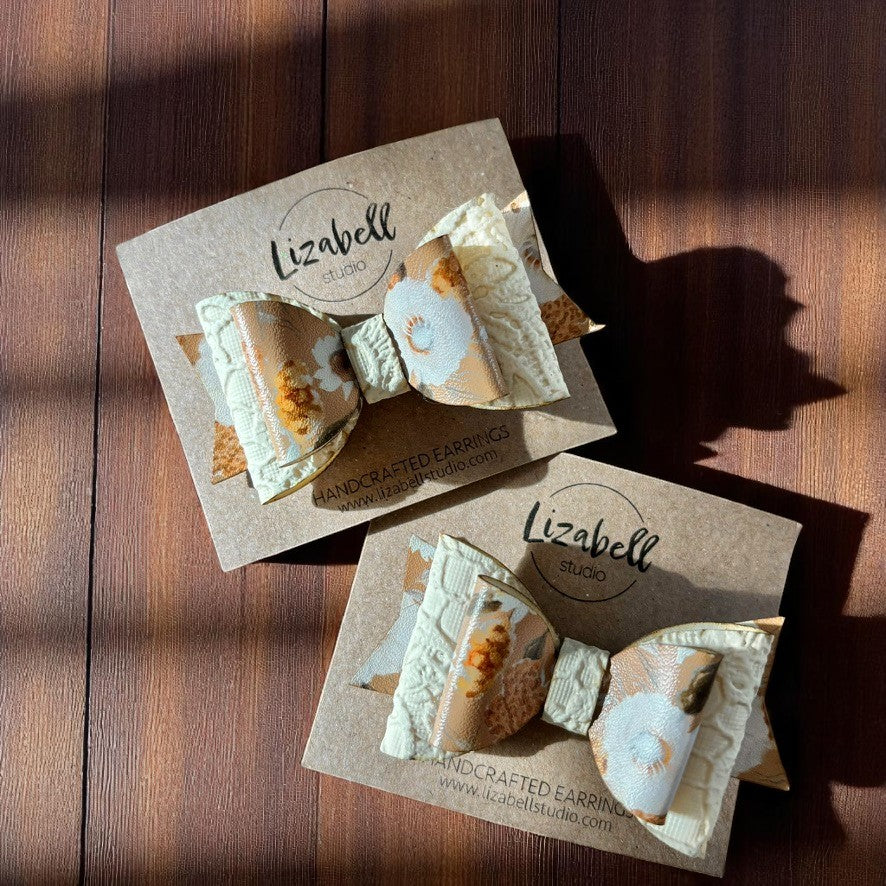 Add a touch of style to your hair with these handcrafted bow clips. Made with three layers of two patterned vegan leathers, these bows bring fun textures and colors to any look.