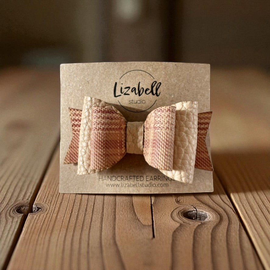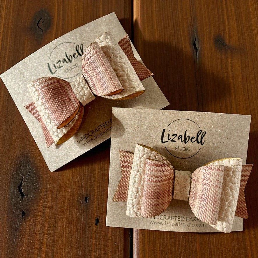 Add a touch of style to your hair with these handcrafted bow clips. Handmade with three layers of two patterned vegan leathers, these bows bring fun textures and colors to any look.