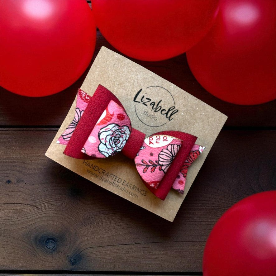 Handmade with three layers of two patterned vegan leathers, these bows bring fun textures and colors to any look.