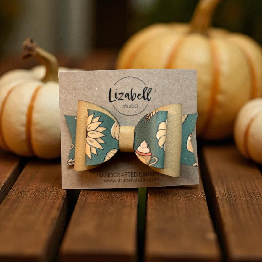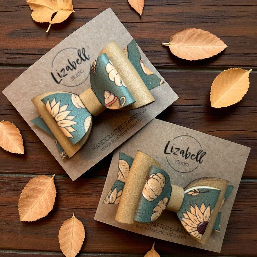 Handmade with three layers of two patterned vegan leathers, these bows bring fun textures and colors to any look.