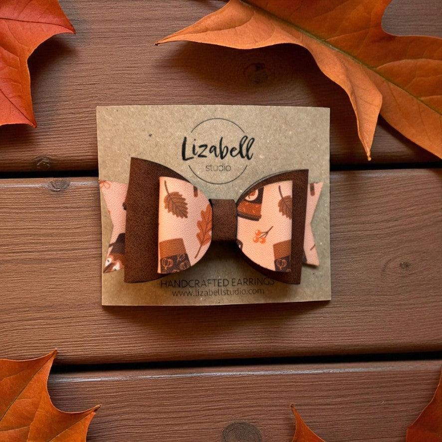 Handmade with three layers of two patterned vegan leathers, these bows bring fun textures and colors to any look.