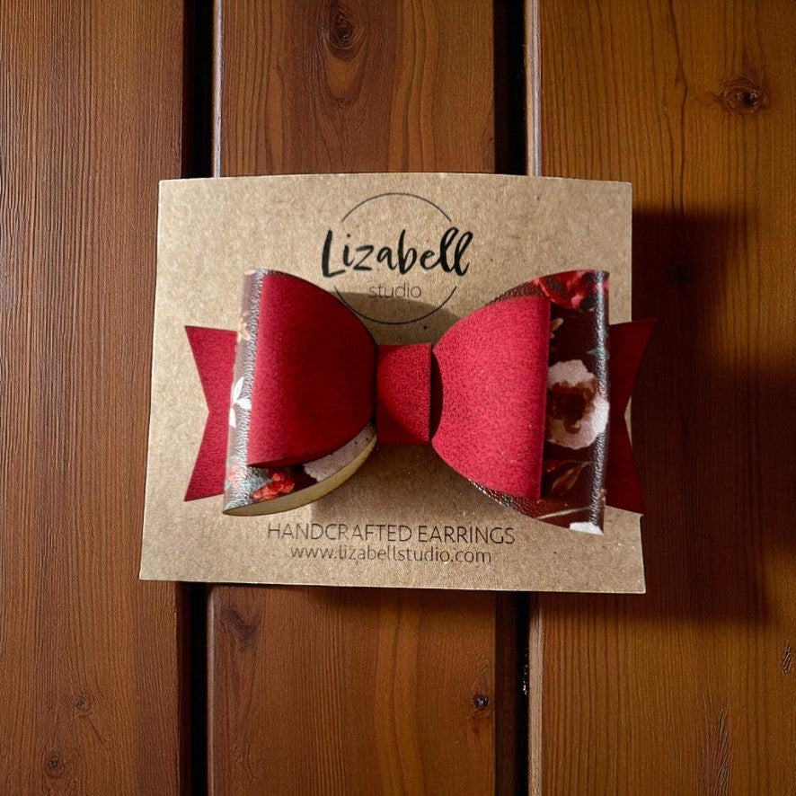 Add a touch of style to your hair with these handcrafted bow clips. Handmade with three layers of two patterned vegan leathers, these bows bring fun textures and colors to any look.
