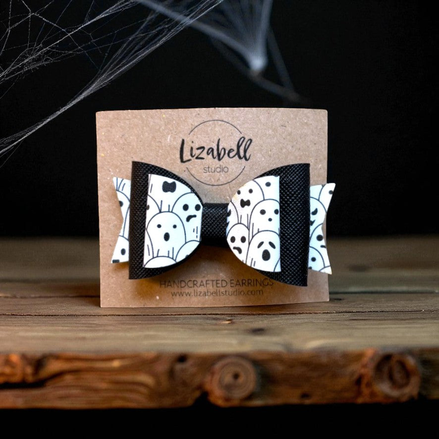 Handmade with three layers of two patterned vegan leathers, these bows bring fun textures and colors to any look.
