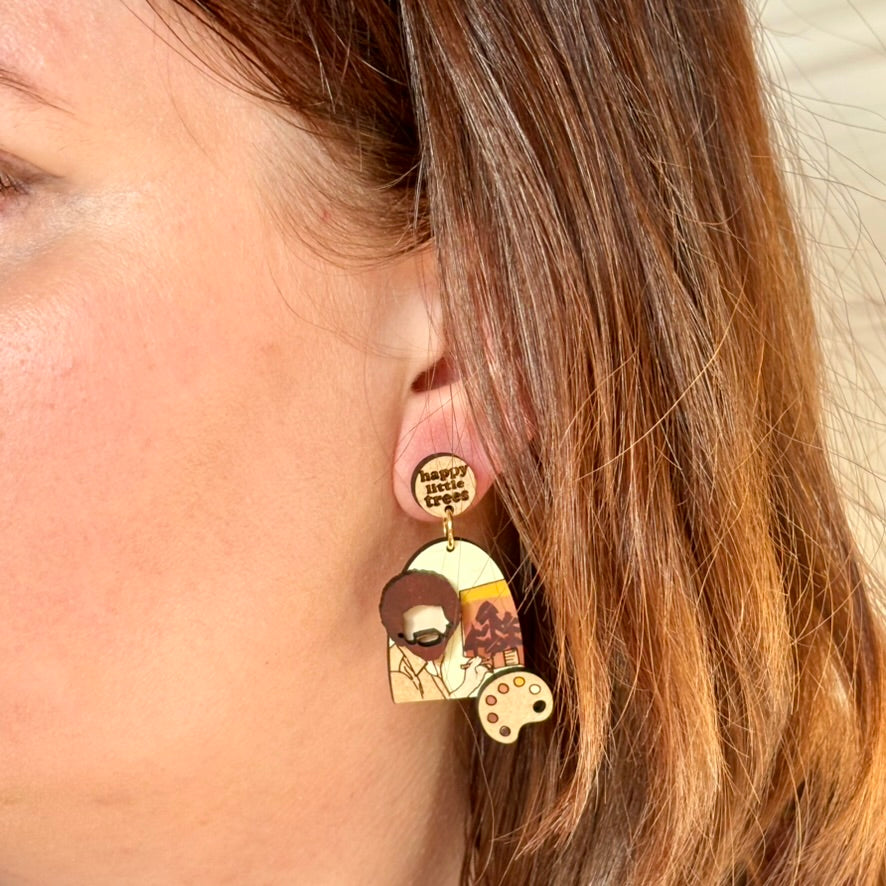 Our Happy Little Earrings are a delightful tribute to the beloved Bob Ross.