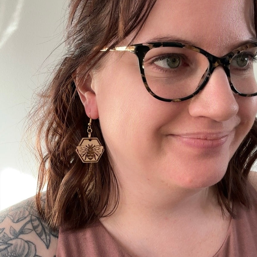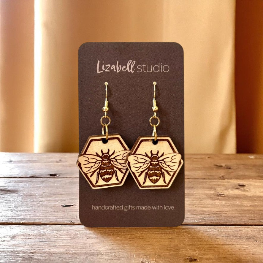 Made from lightweight maple wood, these earrings add a touch of whimsy and charm to any outfit. Whether you're a nature lover or simply adore bees, these earrings will bring a little buzz to your day.