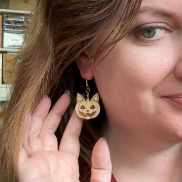 Equal parts spooky and sweet, these laser-cut wood earrings feature a jack-o’-lantern with playful cat ears — the ultimate Halloween mashup! Lightweight and full of fall charm, they’re perfect for cat lovers and pumpkin patch dwellers alike.