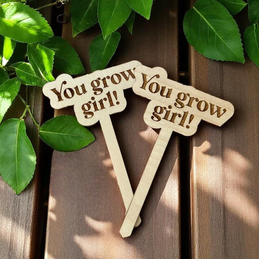 Our Punny Plant Stakes add a touch of humor to your garden and house plants. Made from maple wood and carefully laser cut and engraved, each stake features a playful saying that brings smiles to your plants.