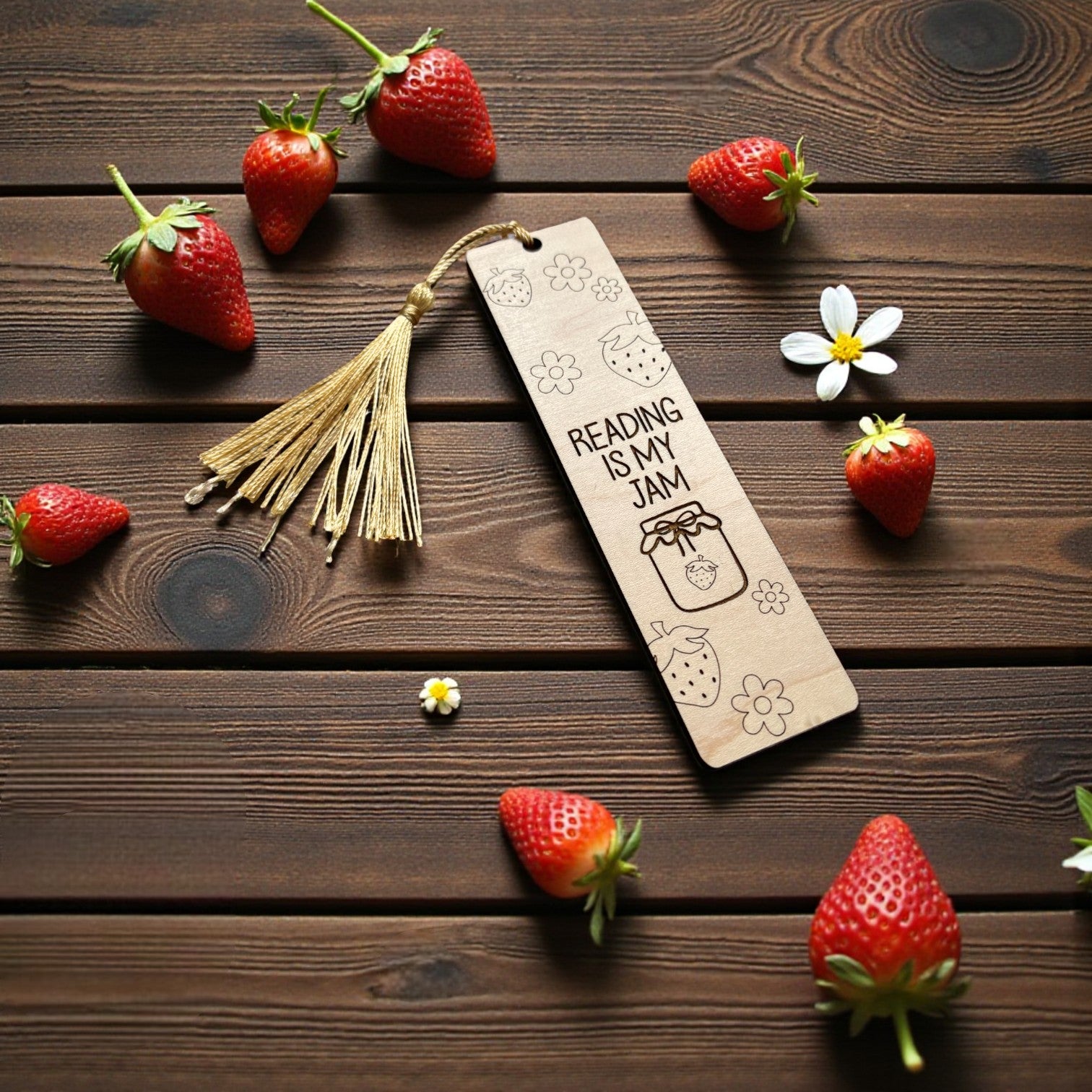 Each bookmark is laser cut and engraved from durable maple wood, allowing for sharp detail and clean edges. The engraving process lightly burns the surface, creating natural contrast that makes the design stand out. After engraving, I hand sand, clean, and inspect each bookmark before finishing it with a hand-tied ribbon or charm.