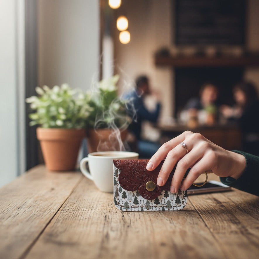 These little pouches are as practical as they are adorable. Hand-sewn from high-quality vegan leather, each one is perfectly sized to hold small essentials like credit cards, cash, lip balm, or jewelry on the go.