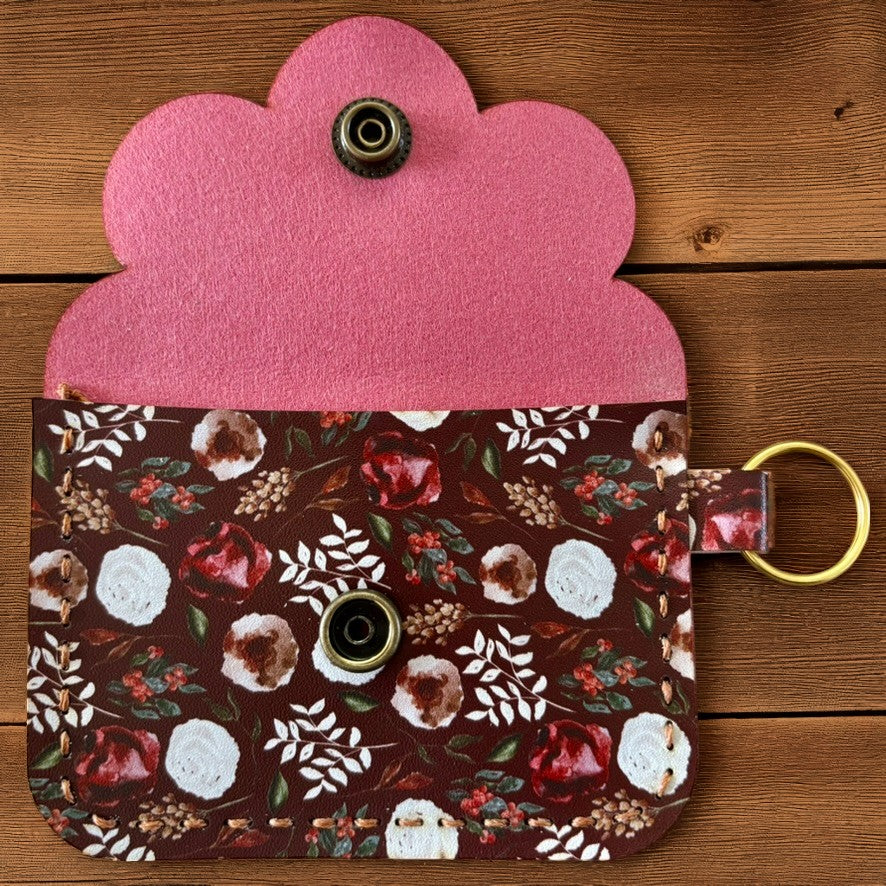 Carry your essentials in charming style with this hand-sewn, vegan leather pouch.