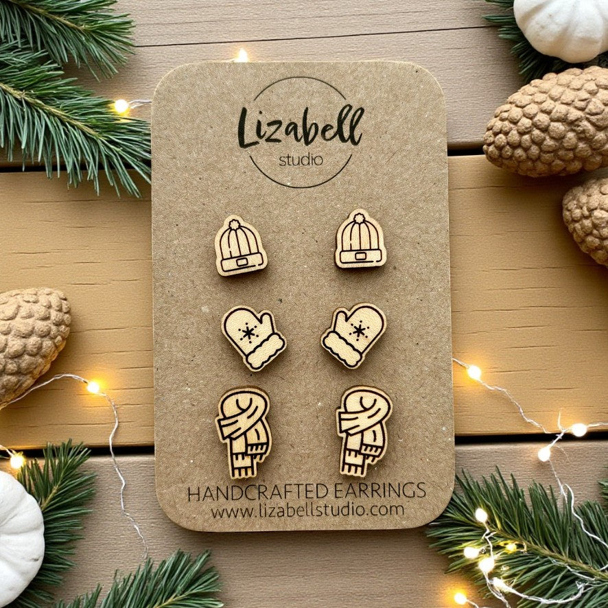 Crafted from maple wood, these adorable earrings capture the essence of cozy winter days. With intricate designs featuring mittens, scarves, and hats, they bring warmth and charm to your look, perfect for chilly weather.