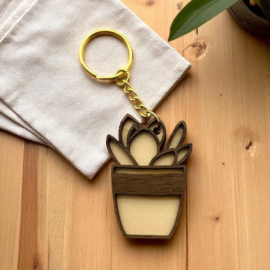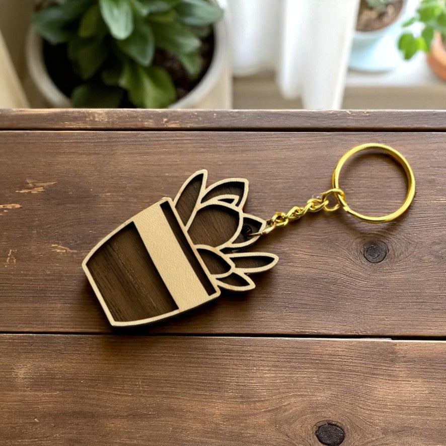 The gold keychain hardware adds a hint of warmth, making it a must-have for any plant enthusiast.
