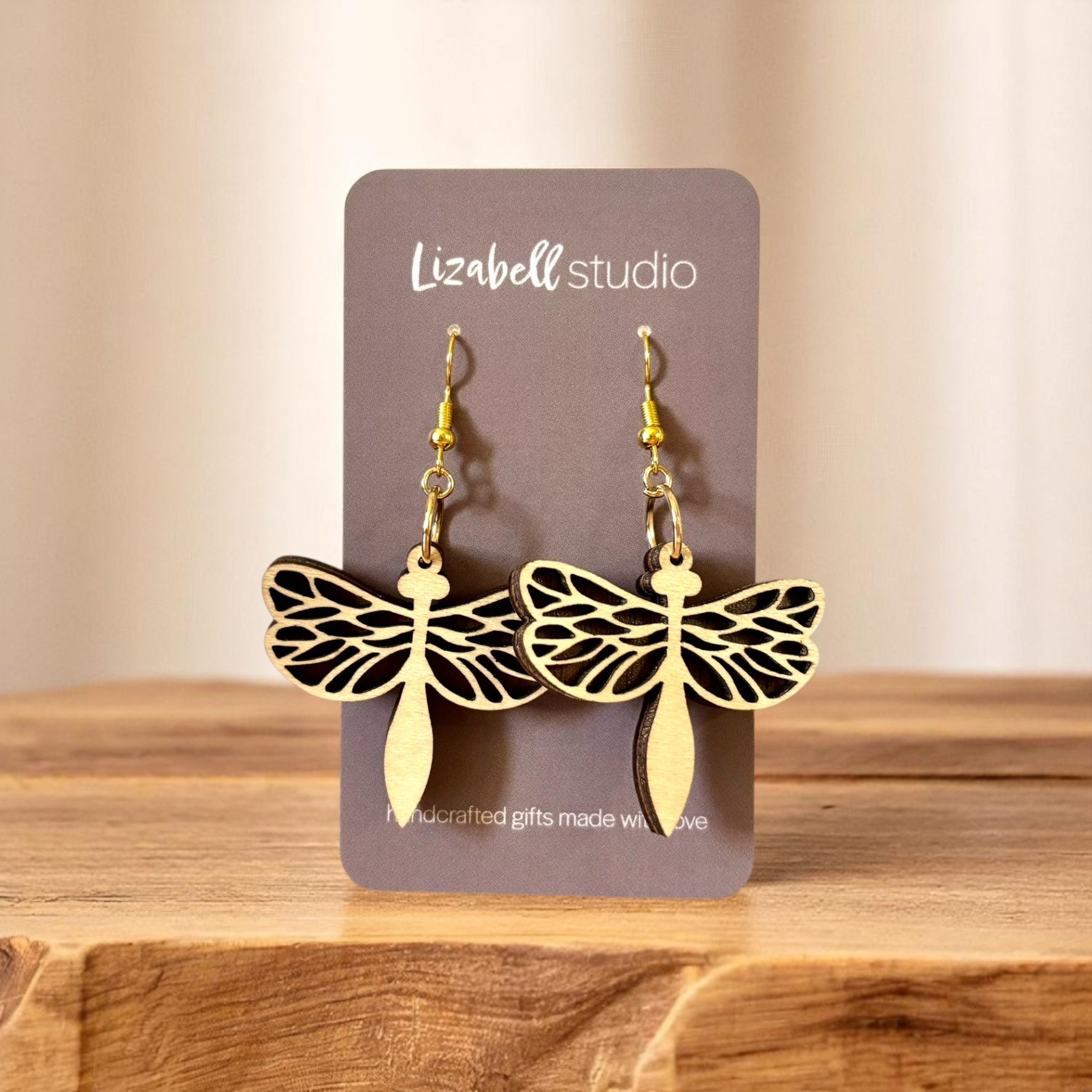 Delicate yet grounded, our Dragonflutter Earrings are crafted from warm walnut and maple wood and laser-engraved with graceful dragonfly wings.