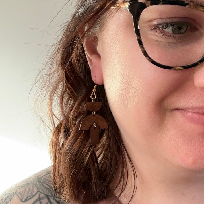 Our Wooden Whimsy Trio Earrings will express yourself in the enchanting embrace of nature with this set of three delightful wood shape dangle earrings.
